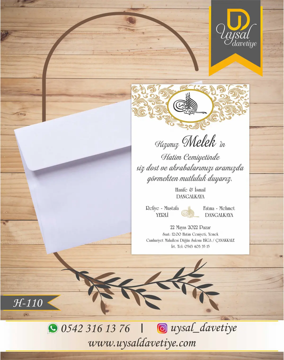 - Davetiye üzerindeki yazılar örnektir, isteğinize göre değiştirilebilmektedir.